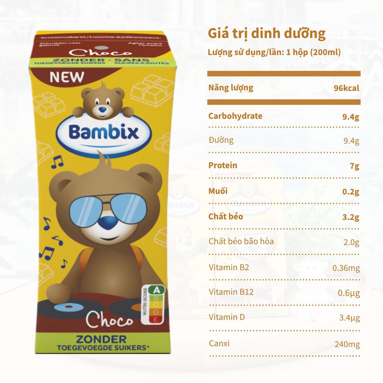 - Hàm lượng canxi lên tới 240mg trong 1 hộp Bambix Chocolate (200ml) có khả năng hỗ trợ hình thành hệ thống xương chắc khỏe cho bé.