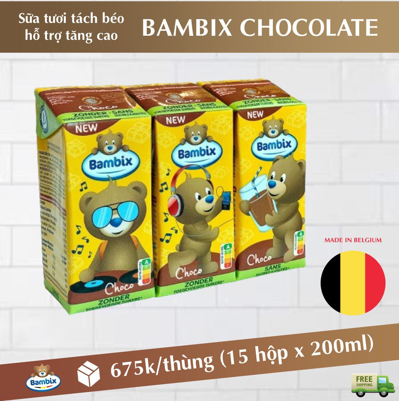 Sữa tươi tách béo BamBix vị choco của Bỉ